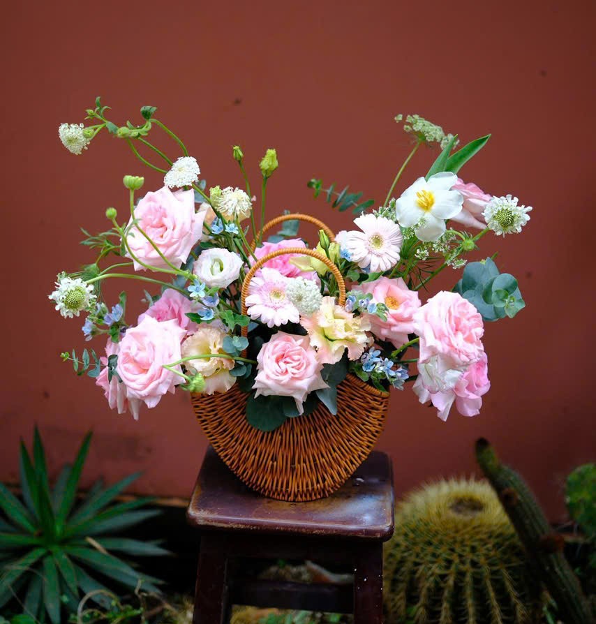 Giỏ Hoa Hồng Mix Vườn Xuân