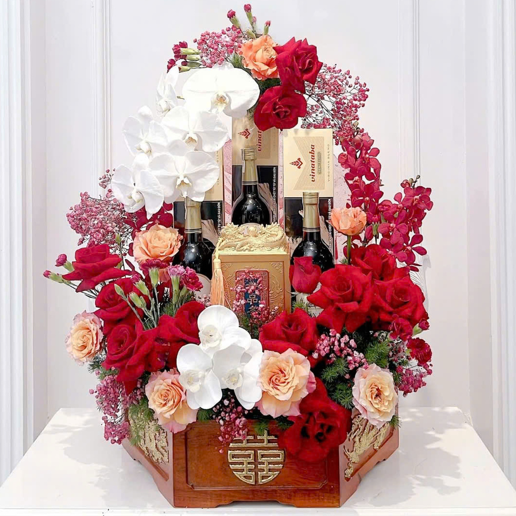 Tráp cưới hỏi được thiết kế theo phong cách truyền thống kết hợp hiện đại theo yêu cầu.